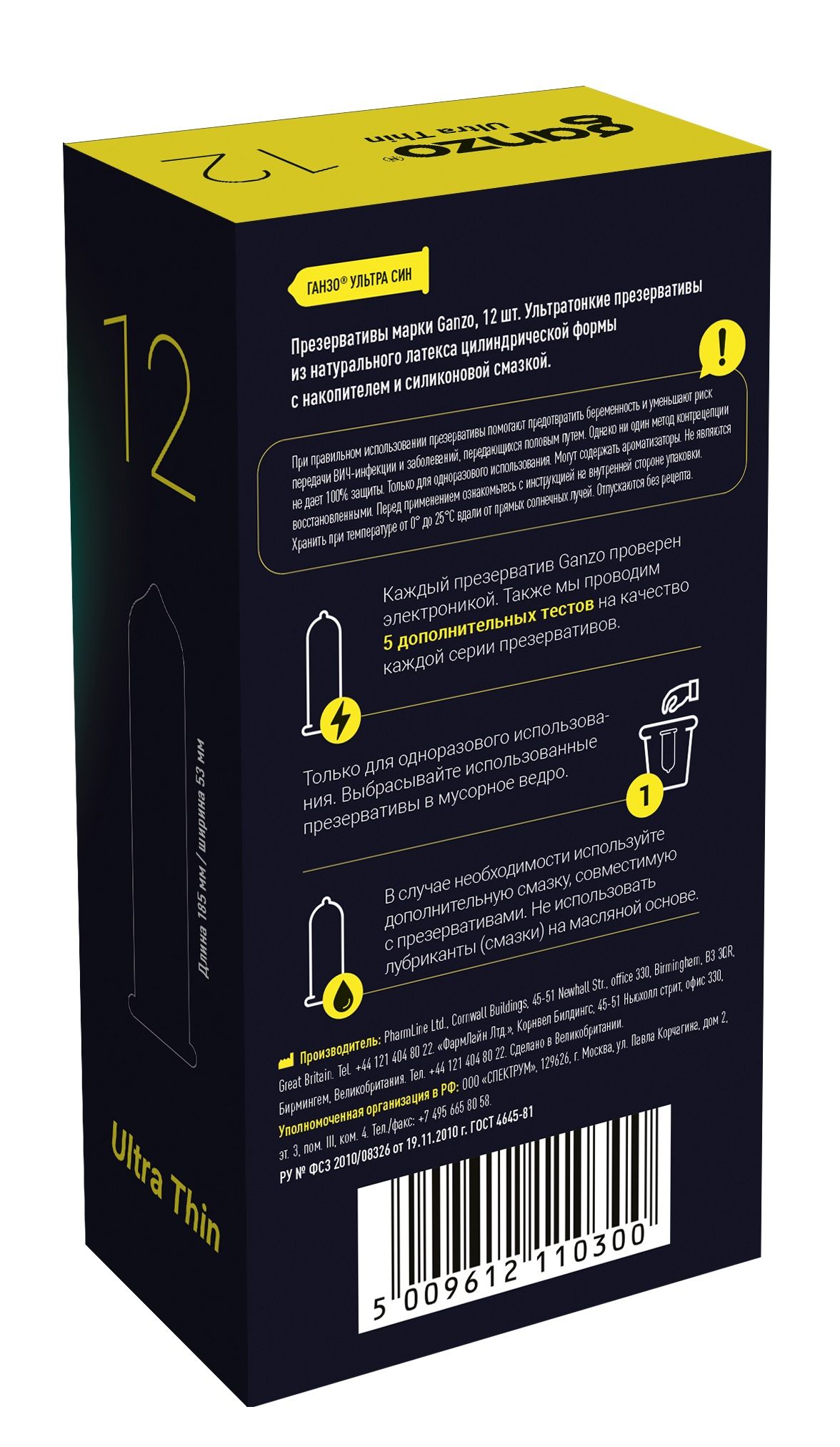 Прозрачные презервативы Ganzo Ultra thin цилиндрической формы с накопителем, силиконовой смазкой и супер тонкими стенками для более естественных ощущений. Изготовлены из натурального высококачественного латекса. Проверены с использованием электростатической технологии для большей надежности. Толщина стенки - 0,049 мм.