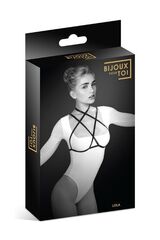 Упряжь на грудь на регулируемых ремешках. Сзади удобная застежка.