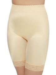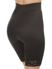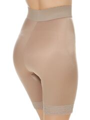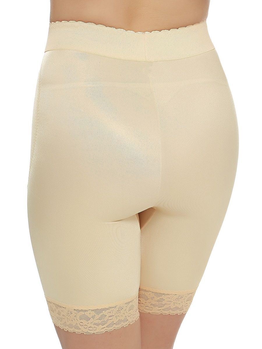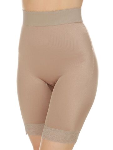 Утягивающие панталоны с завышенной талией средней степени коррекции из шелковистого материала. Дополнительная невидимая вставка на фронтальной панели усиливает корректирующий эффект области живота. Широкая лента подчеркивает талию. Нижний край выполнен из кружева с силиконовой лентой, что позволяет изделию плотно зафиксироваться на бедрах и не вызывать дискомфорта при ходьбе. Ластовица – 100% хлопок.