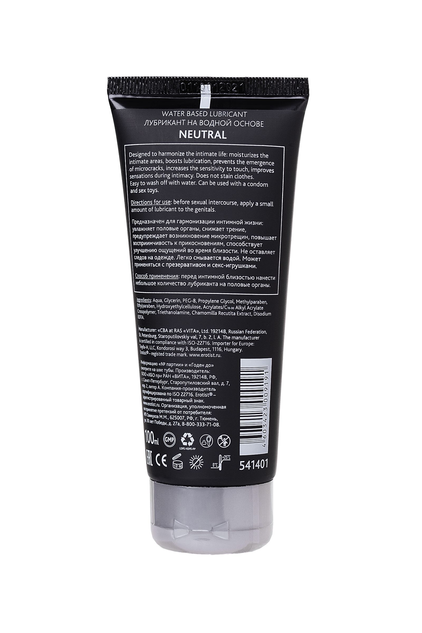 Лубрикант Erotist Neutral имеет водную основу: он гипоаллергенен, совместим с презервативами и игрушками для взрослых, не оставляет следов и легко смывается водой.