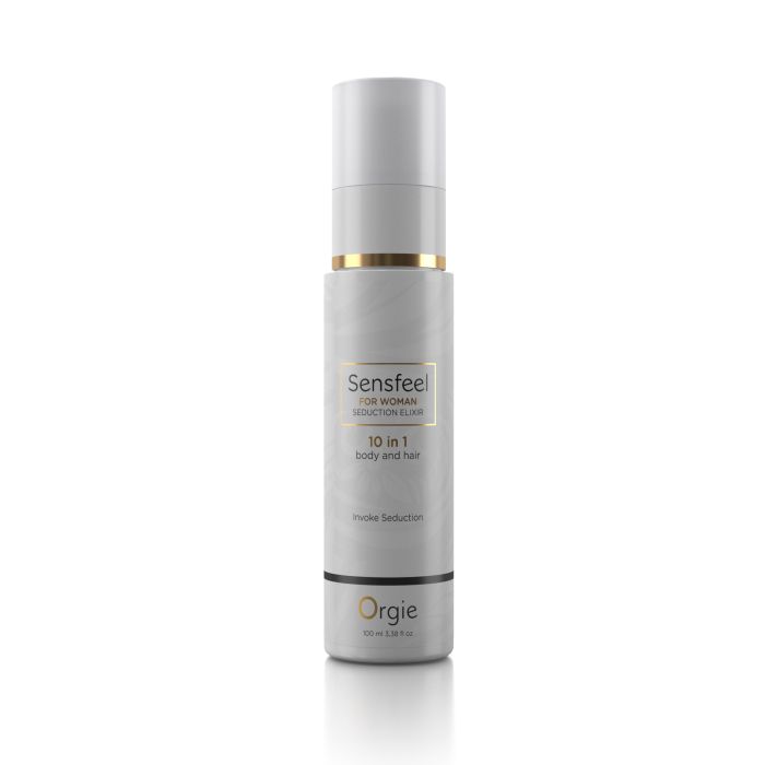 Многофункциональный увлажняющий спрей Orgie Sensfeel 10-в-1 для тела и волос с феромонами. Потрясающая комбинация активного ингредиента Sensfeel на натуральной основе с освежающе лёгким цветочно-фруктовым ароматом-афродизиаком в составе комплексного средства для тела и волос, эффективного во всех своих функциональных аспектах: увлажнение тела, шелковистая кожа, УФ-фильтр для волос, восстановление кончиков волос, защита от завитков и спутывания, защита цвета, блеск волос и мягкость, контроль объема волос, аромат афродизиака, пробуждающий физическое влечение. Продукт предназначен для женщин.