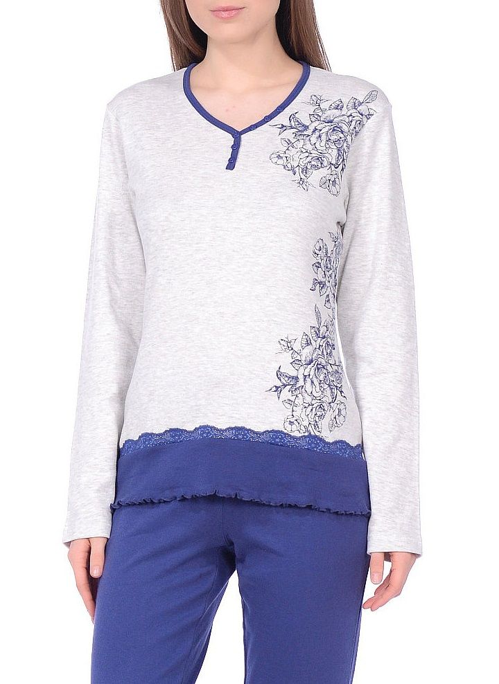 Пижама женская из хлопкового трикотажа. Кофта с длинными рукавами и вырезом на пуговицах, и брюки. В комплекте: кофта, брюки.