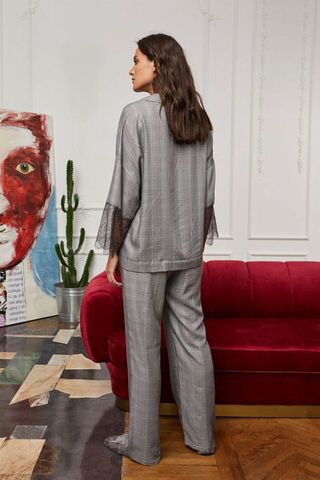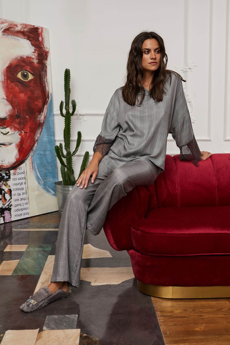 Уютные домашние брюки в черно-белую клетку, придающую изделию красивый серый оттенок. Свободный фасон брюк позволяет вам не чувствовать стесненности в движении.