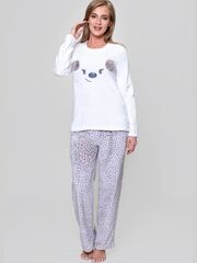 Комплект из микрофибры. Свитшот из однотонной ткани с длинным рукавом с аппликацией, брюки свободного покроя в мелкий рисунок. В комплекте: свитшот, брюки.