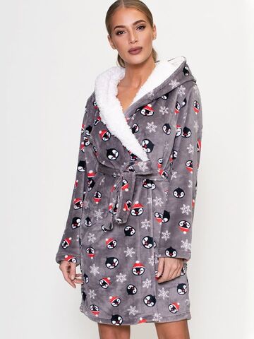Халат из микрофибры с капюшоном, внутри с отделочной тканью, с длинным рукавом, на запахе и с поясом.