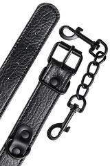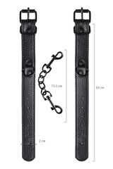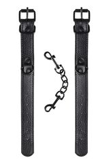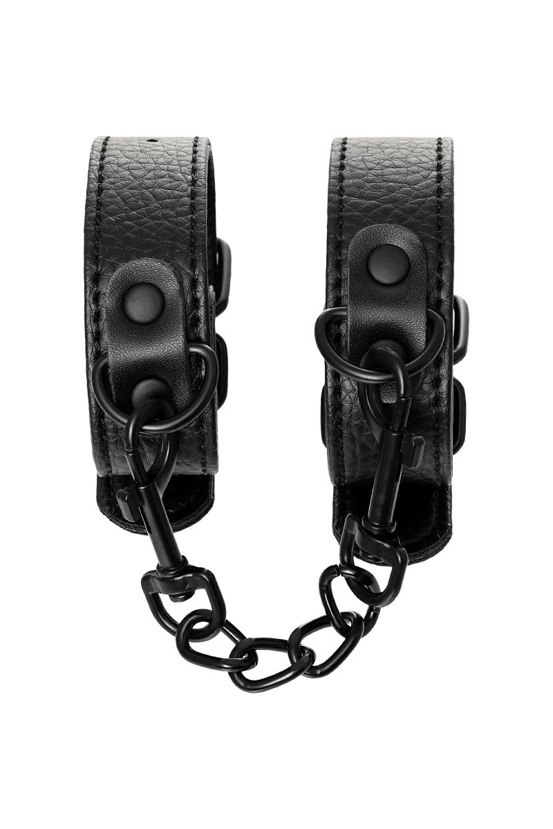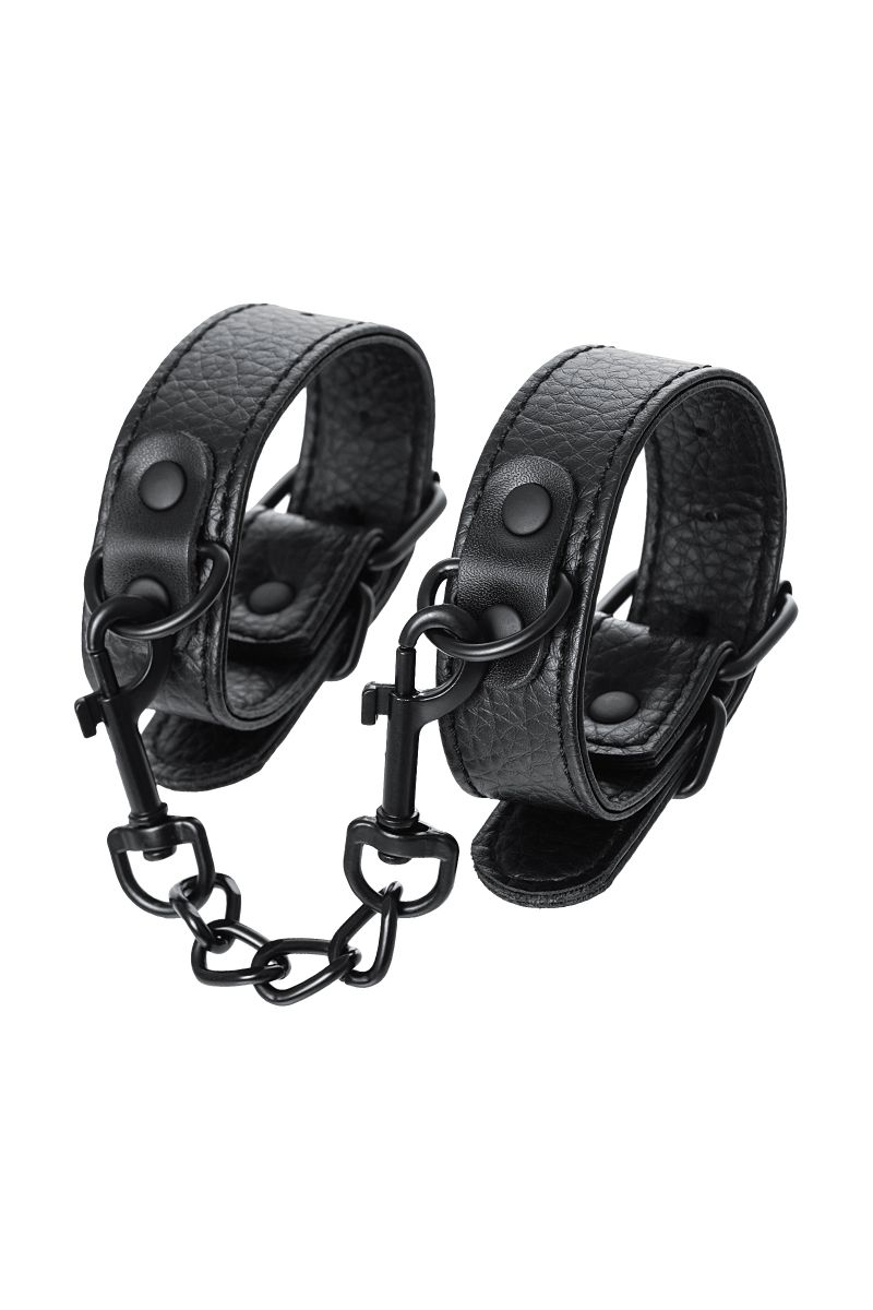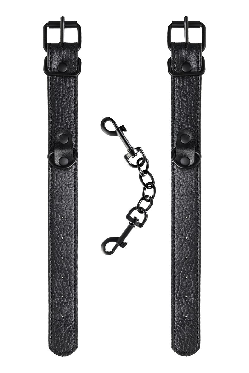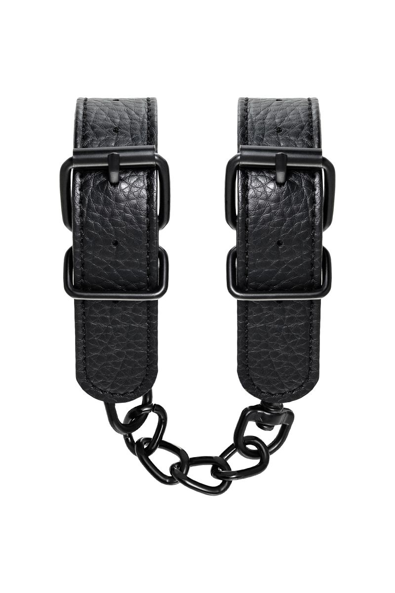 Эти аккуратные наручники из черной PU-кожи с черной же цепочкой-сцепкой нельзя назвать просто ограничителями свободы. Вся металлическая фурнитура выдержана в стиле строгого подчинения, не отвлекая внимание от игрового процесса. Они станут для вас стильным аксессуаром и дополнят любой образ. Благодаря универсальным цвету и форме, они подойдет партнеру любого пола. Фиксируйте руки перед собой или за спиной, развивайте степень своего доверия к Мастеру и свои скрытые желания. Длина манжет - 26,5 см., ширина - 2,5 см.