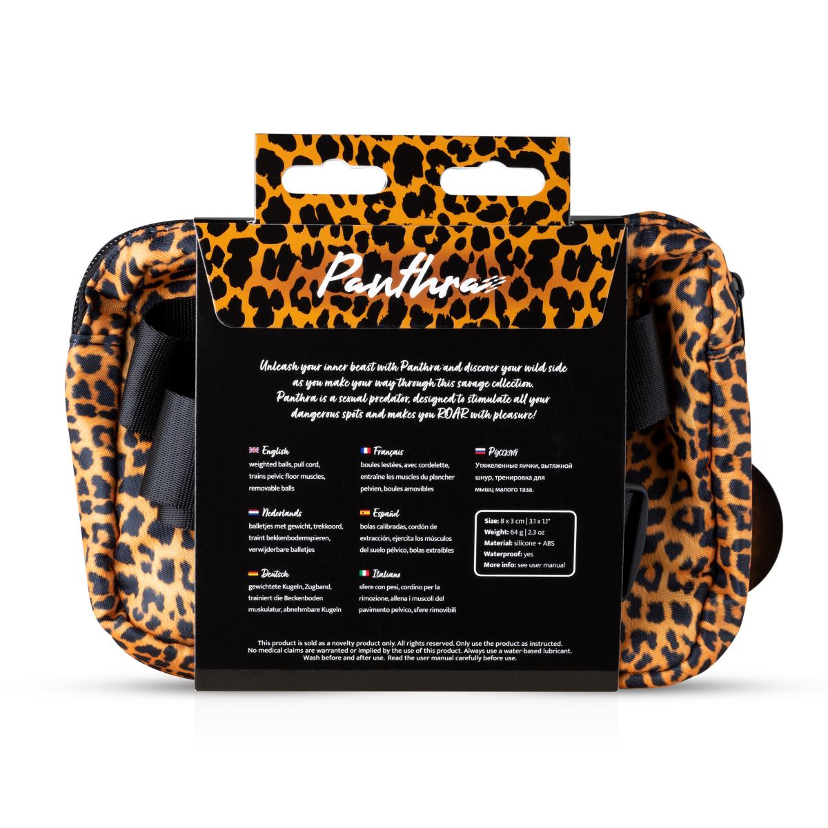 Panthra Zane Geisha Balls – вагинальные шарики из безопасного пластика, не содержащего фталаты, в оправе из медицинского силикона. В комплект входит стильная леопардовая косметичка. Идеальны для тренировки интимных мышц. Быстро принимают температуру человеческого тела. Рабочая длина - 8 см.