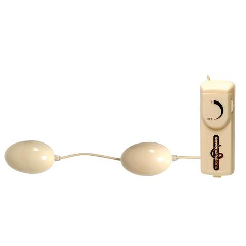 Два глянцевых виброяйца с выносным пультом управления. Скорость вибрации регулируется с помощью колесика.