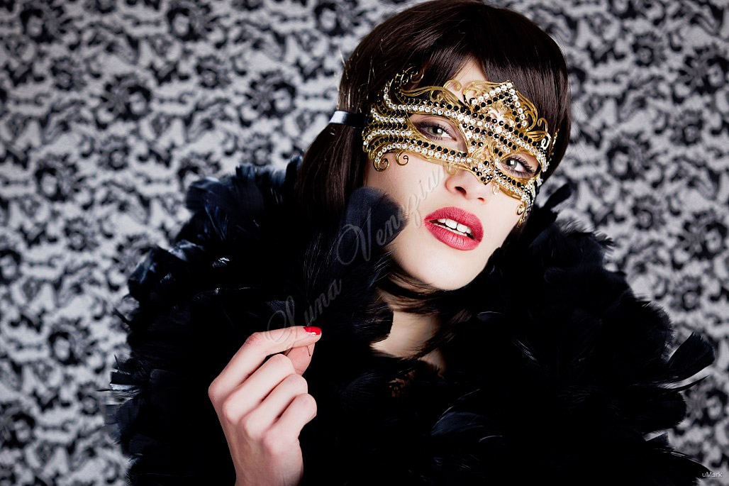 Маска скрывает и в то же время подчеркивает лицо, делая его загадочным и желанным. Сделаная из тонкого металла, в то же время легкая и воздушная, элегантно завязывается на голове с помощью шелковых лент.