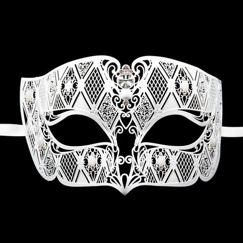 Маска скрывает и в то же время подчеркивает лицо, делая его загадочным и желанным. Сделаная из тонкого металла, в то же время легкая и воздушная, элегантно завязывается на голове с помощью шелковых лент.