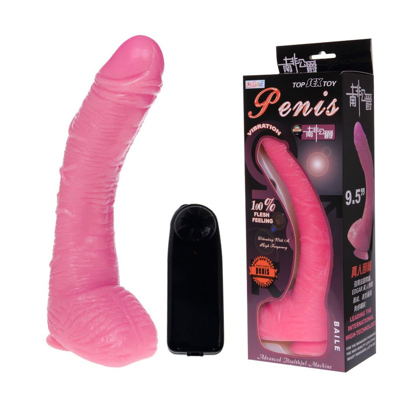 Вибратор-гигант на присоске и с выносным пультом управления - 26 см.