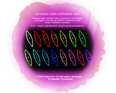 Каждый из 15 вариантов вибрации и пульсации соответствуют определённому цвету, что позволяет установить любимый режим даже в темноте. Полностью заряженный аккумулятор рассчитан на 4 часа непрерывной работы, зарядное устройство в комплекте. Дизайнерская упаковка делает ZINI роскошным подарком. Длина - 20 см.