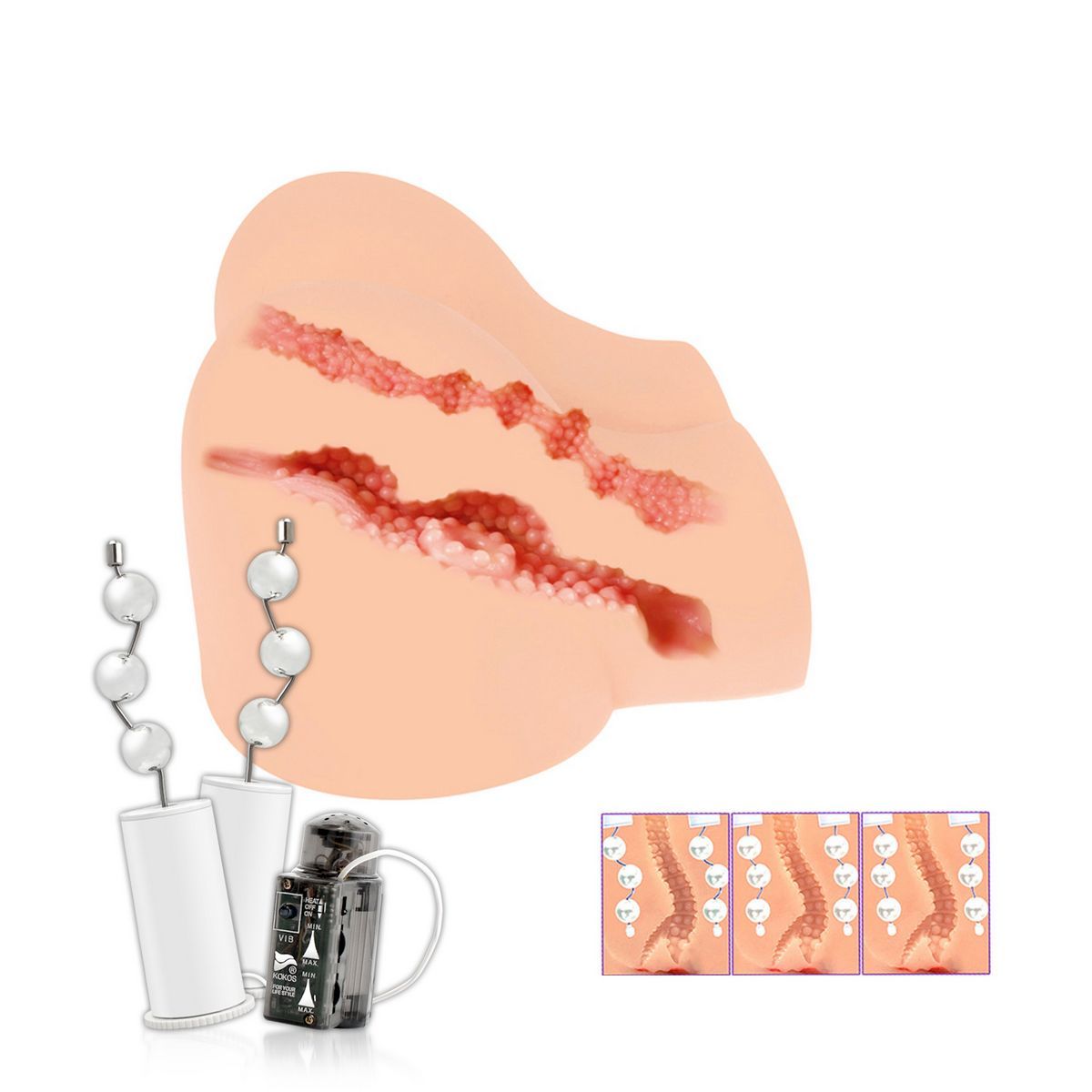 Полуторс с вибрацией, ротацией и звуком. Два отверстия: вагинальное с выраженным эффектом всасывания и тесное анальное.