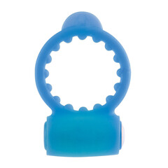 Эрекционное кольцо ярко-голубого цвета с вибрацией. Батарейки в комплекте.