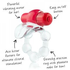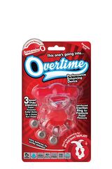 Виброкольцо с язычком и красным виброэлементом Overtime