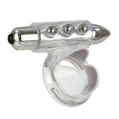 Прозрачное эрекционное виброкольцо имеет клиторальный стимулятор в виде мягких лепестков для стимуляции партнерши. Съемная вибропуля позволяет использовать игрушку как в режиме вибрации, так и без нее. Режим вибрации включается кнопкой в основании вибропули, имеет 3 скорости вибрации. Эластичный материал позволяет растягивать кольцо до нужного диаметра. Работает от трех батареек типа LR1 (входят в комплект).