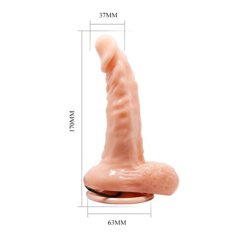 Реалистичный вибромассажер с выносным пультом управления и различными уровнями вибрации, удобная подошва на присоске позволяет использовать его даже на вертикальных поверхностях. Сделан из материала, приятного на ощупь, с применением абсолютно новых технологий. Не содержит фталатов, без запаха и вкуса. Не токсичен.