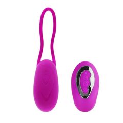 Лиловый силиконовый вибромассажер с дистанционным управлением и 12 функциями вибрации. Имеется петелька для удобного введения игрушки в вагину. Шелковистая на ощупь поверхность.