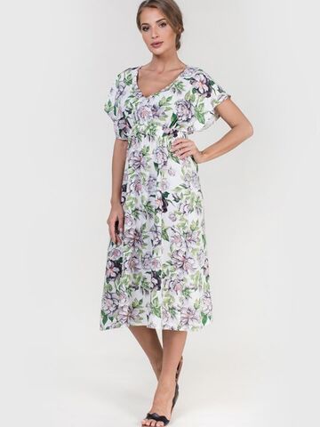 Вискозное платье со спущенным рукавом и цветочным принтом