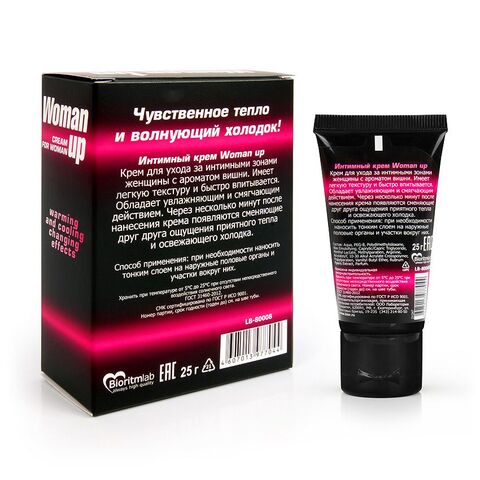 Женский возбуждающий крем Woman up с волнующим ароматом вишни. Раскрывает чувственность и раскрепощает, дарит потрясающие ощущения во время интимной близости. Через несколько минут после нанесения Woman up появляются волнообразные ощущения – приятное тепло и освежающий холодок. Крем обладает нежной текстурой, увлажняет, смягчает и ароматизирует интимные зоны.