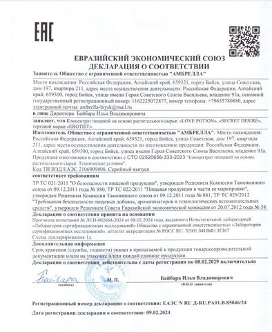 Возбуждающее средство для женщин в форме спрея – натуральный продукт, увеличивающий сексуальное желание, тонизирующий, улучшающий общее самочувствие. Спрей «Тайное желание» стимулирует кровообращение в органах малого таза, усиливая приток крови к гениталиям и позволяя получить больше удовольствия от секса, улучшая либидо, обостряя и повышая чувствительность эрогенных зон. Благодаря комплексу биосинергетически взаимодействующих активных компонентов способствует повышению уровня возбудимости, усилению ощущения при достижении оргазма и нормализации процесса выделения влагалищной секреции. Устраняет скованность и боязнь сексуальной близости, расслабляет мышцы, абстрагирует от внешних раздражителей и концентрирует на половом партнере. Оказывает общеукрепляющее воздействие на весь женский организм. Сбалансированная формула спрея влияет на повышение в крови «гормона счастья» – серотонина, расслабляющего, повышающего эмоциональный настрой женщины и ее чувство удовлетворенности сексом. Применение мицеллярных форм растительных экстрактов (вытяжек лекарственных трав) обеспечивает высокую степень проникновения и всасываемость активных мицеллированных ингредиентов при сублингвальном приеме (подъязычно) и позволяет в несколько раз повысить биоусвояемость необходимых для жизнедеятельности организма веществ, повышая их биодоступность в 5-10 раз.
