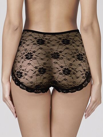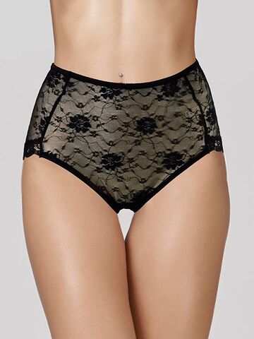 Трусики-слип с завышенной линией, из мягкого эластичного цветочного кружева. Высота бочка 14 см. Пояс и линия открытия ноги спереди обработаны мягкой окантовкой. Внимание: корейские размеры! См. размерную сетку производителя.