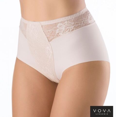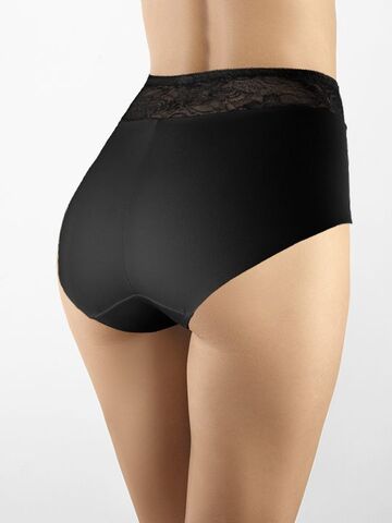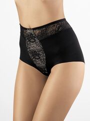 Дамские трусы с высокой линией талии и легким утягивающим эффектом. Кокетка по переду и спинке, центральная деталь полочки, украшены кружевным полотном. Перед продублирован хлопком. Внимание: европейские размеры! Для определения российского размера необходимо прибавить 6!