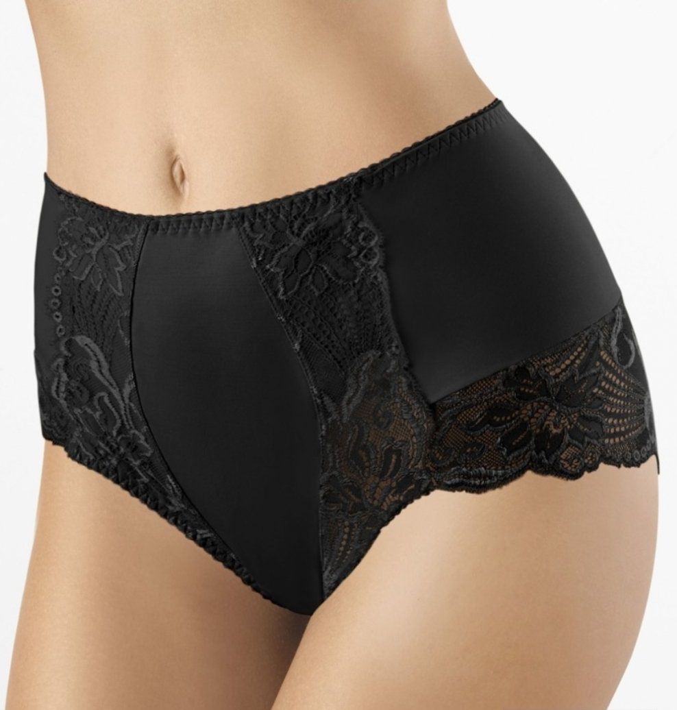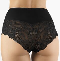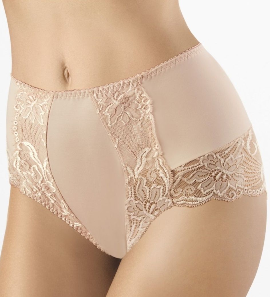 Дамские трусы с высокой линией талии и легким утягивающим эффектом. Ретро-трусики с высокой линией талии отлично обтягивают фигуру. Передняя деталь продублирована эластичным полотном и украшена кружевом. Зона промежности уплотнена хлопковой вставкой. Внимание: европейские размеры! Для определения российского размера необходимо прибавить 6!