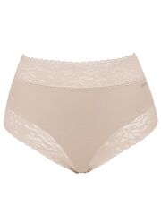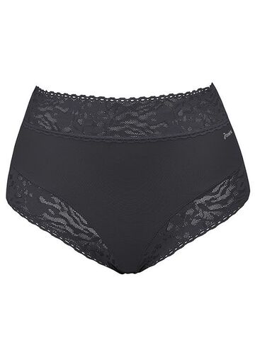 Трусики-слипы с высокой линией талии, выполненные из микрофибры. Декорированы кружевом, предотвращающим сдавливание, в чувствительных зонах талии и бедер.