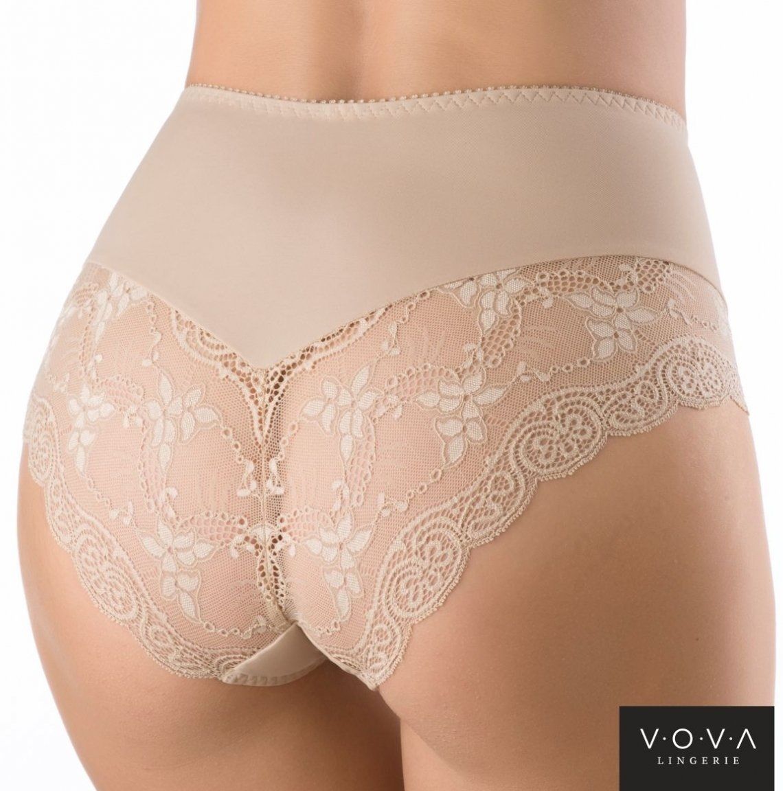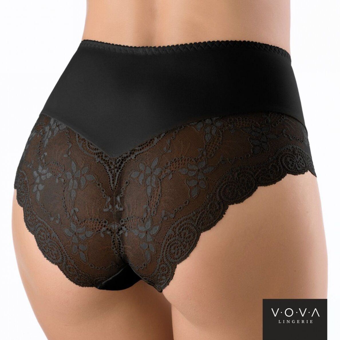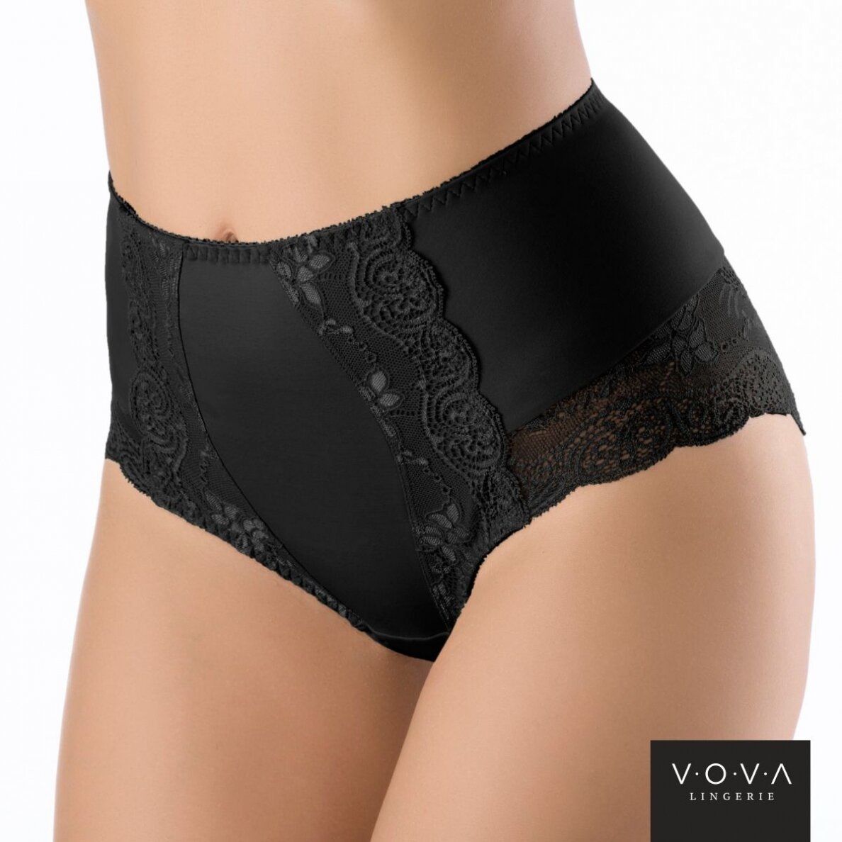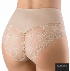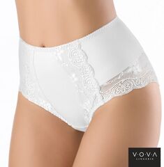 Ретро-трусики с высокой линией талии отлично обтягивают фигуру. Передняя деталь продублирована эластичным полотном и украшена кружевом. Зона промежности уплотнена хлопковой вставкой. Внимание: европейские размеры! Для определения российского размера необходимо прибавить 6!