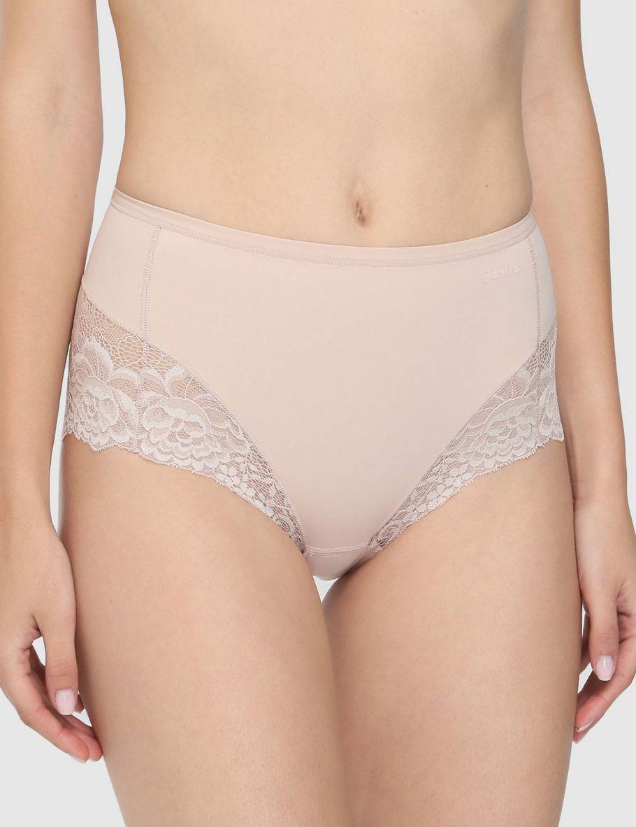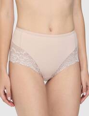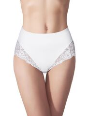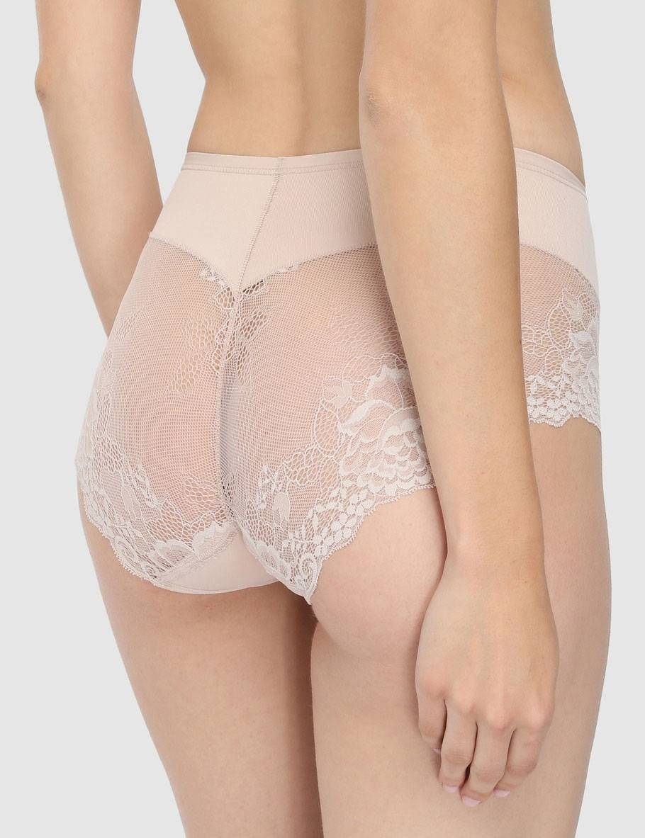 Трусы-утяжки с завышенной линией талии. Высота бочка 16 см. Спереди выполнены из плотной двухслойной микрофибры, сзади и по линии открытия ноги из эластичного кружева с бесшовным краем. Уровень коррекции Medium. Ластовица выполнена из уникального хлопкового материала.