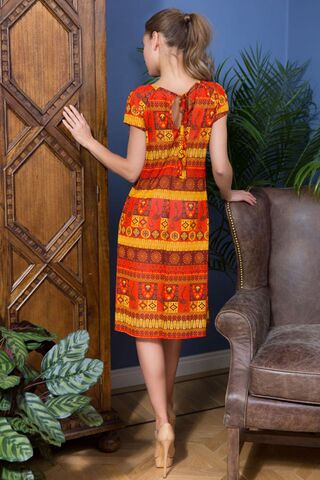 Пляжная туника Adelin средней длины выполнена из эластичной сетки с ярким принтом. Модель прямого силуэта с рельефами от проймы и рукавом реглан . Горловина спинки с разрезом капелька и завязкой из принтованной сетки для лучшей посадки по фигуре.