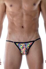 Яркие мужские трусы-танга с геометрическим принтом