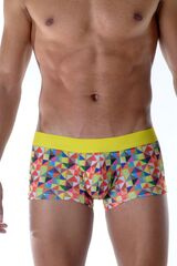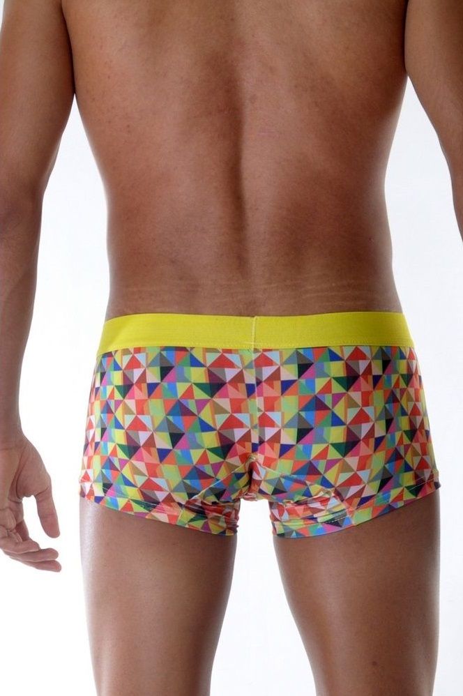 Яркие трусы-боксеры с геометрическим принтом и цветной резинкой.