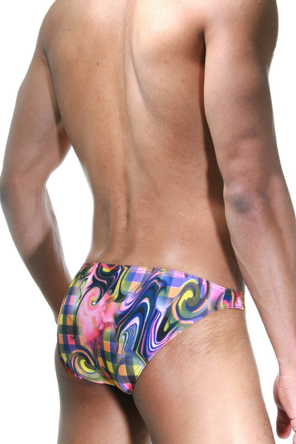 Яркие трусы-слипы с замысловатым цветным принтом.