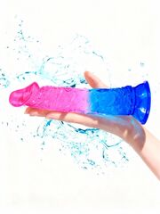 Яркий фаллоимитатор в форме полового члена подарит настоящую эротическую феерию. Хорошо очерченная головка и рельефная поверхность обеспечат дополнительный стимулирующий эффект. Секс-игрушка изготовлена из упругого материала, прекрасно гнётся в разные стороны. Может использоваться для всех видов секса и в разнообразных позах. Присоска надёжно фиксирует интимный аксессуар на ровной поверхности. Рабочая длина - 18 см.