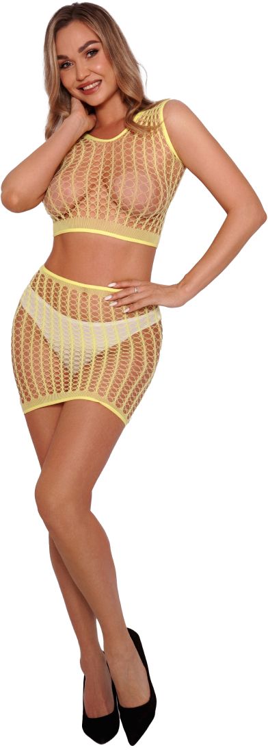 Яркий сетчатый комплект: топ и юбка