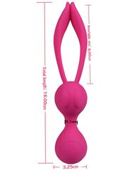 Ярко-розовые вагинальные шарики из высококачественного силикона. Шарики соединяются эластичной перемычкой и плавно перетекают друг в друга. В основании игрушки находится эластичная петля для извлечения, оформленная в виде кроличьих ушек, соединенных между собой. Рабочая длина - 8 см.