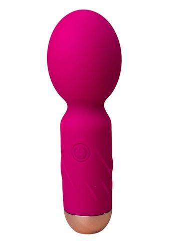 Ярко-розовый мини-wand вибратор для стимуляции эрогенных зон. Имеет 10 режимов вибрации.