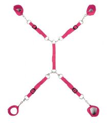 В комплект входят четыре регулируемые манжеты из неопрена, ремни и четыре ремня, которые соединяются с центральной лентой, которую можно использовать на кроватях любого размера. На каждом ремешке есть манжета, прикрепленная к уплотнительному кольцу с поворотным зажимом, чтобы зафиксированному партнеру было удобно, и он мог надежно находиться в широко раскрытом положении. Установить этот комплект очень легко, а когда время игры закончится, вы можете незаметно спрятать манжеты под матрас до следующего сеанса БДСМ-приключений.