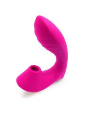 Ярко-розовый вибромассажер с вакуумной стимуляцией клитора