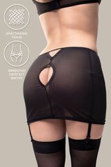 Линия провокационного эротического белья WANAME Apparel – для женщин, которые хотят наслаждения и не скрывают этого. Юбка-пояс для чулок «Са?тэлти» (англ. Subtlety – «Тонкость») из тонкой прозрачной эластичной сетки облегает бедра, ощущается невесомой, не сковывают движений, но визуально меняет силуэт. Шелковистая поверхность материала дарит приятные ощущения при прикосновении. Современные элементы дизайна тешат женское самолюбие. Аккуратный вырез сзади приковывает внимание наблюдателя при каждом шаге. Провокационная длина слегка прикрывает ягодицы. Прозрачность ткани и съемные регулируемые пажи для чулок дополняют чувственный образ.