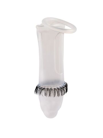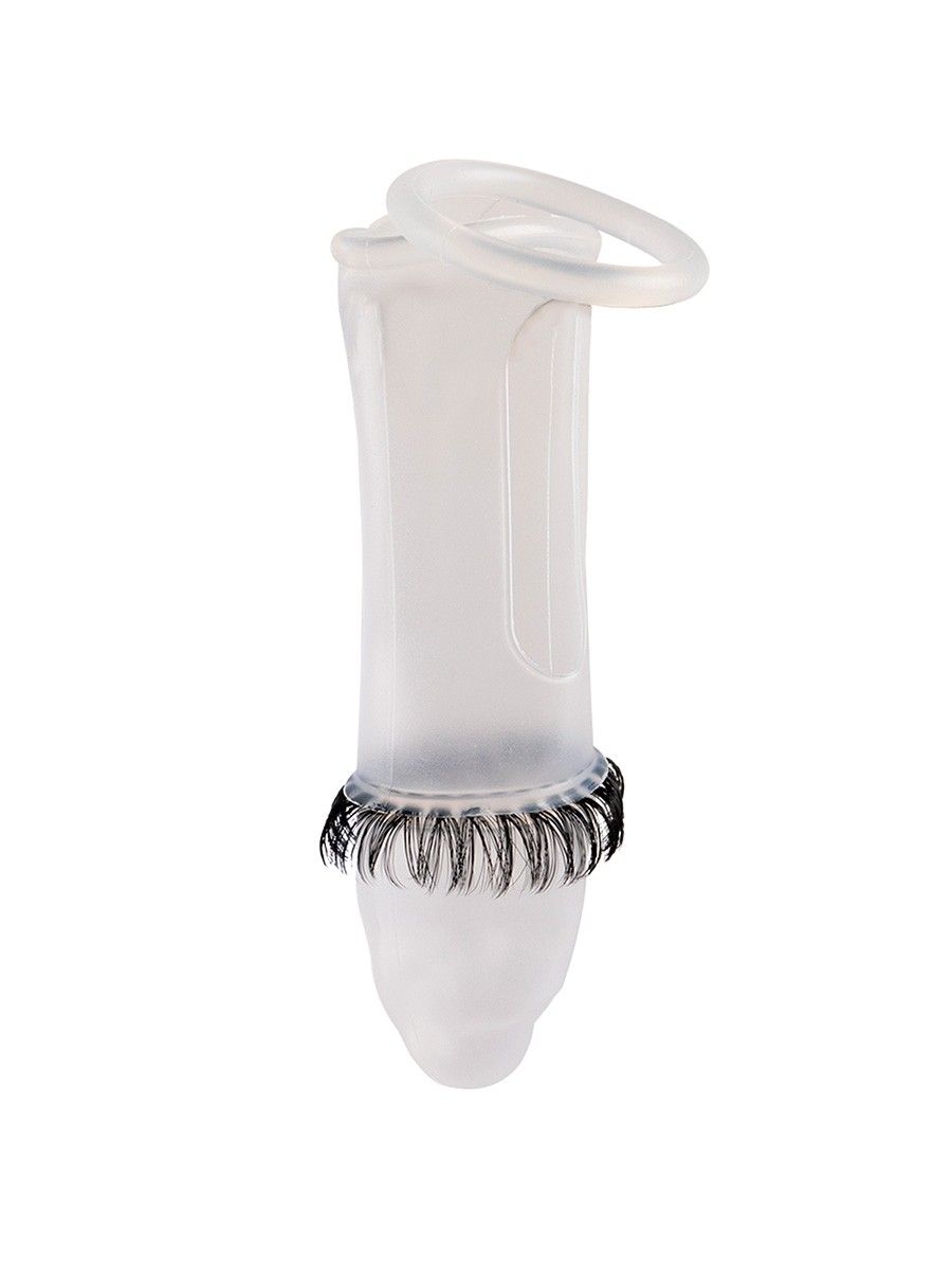 Закрытая насадка на пенис с подхватом мошонки и стимулирующими «ресничками»