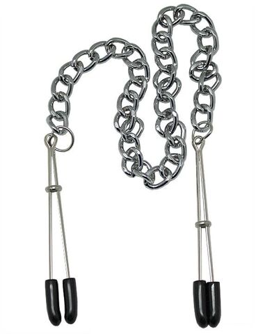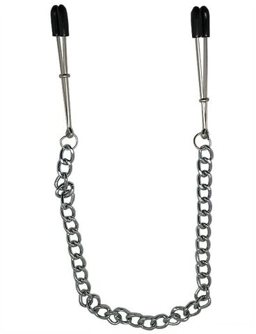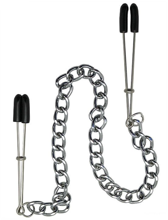 Зажимы на соски из коллекции Eroticon. Зажимы с мягкими накладками, для предотвращения микротрещин сосков. Длина цепочки - 28 см.