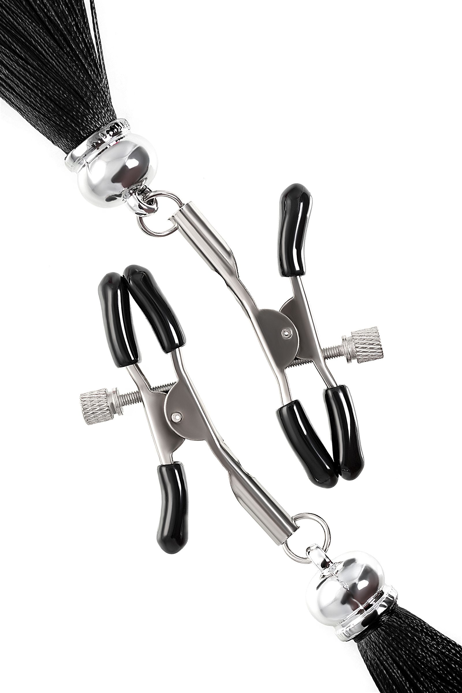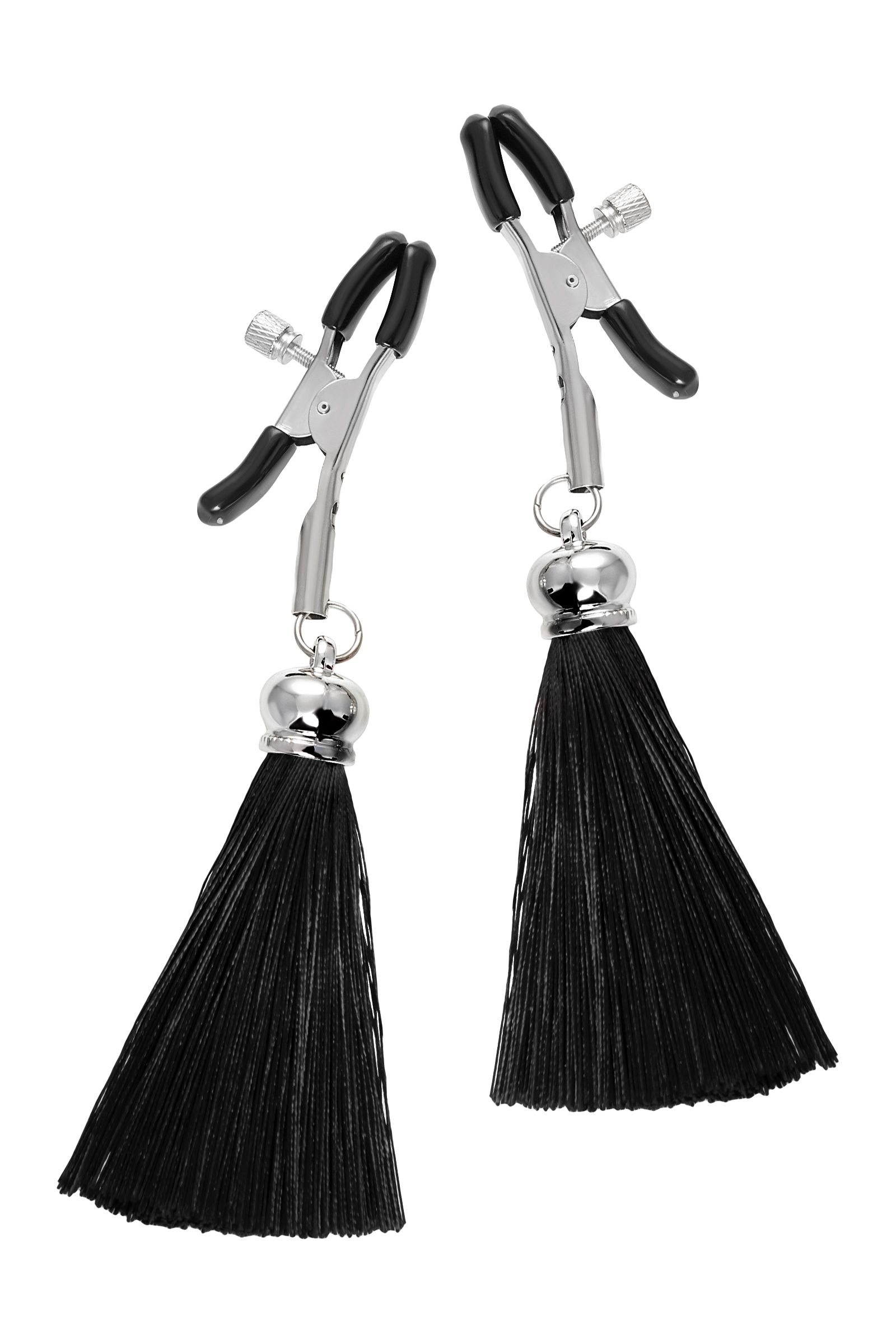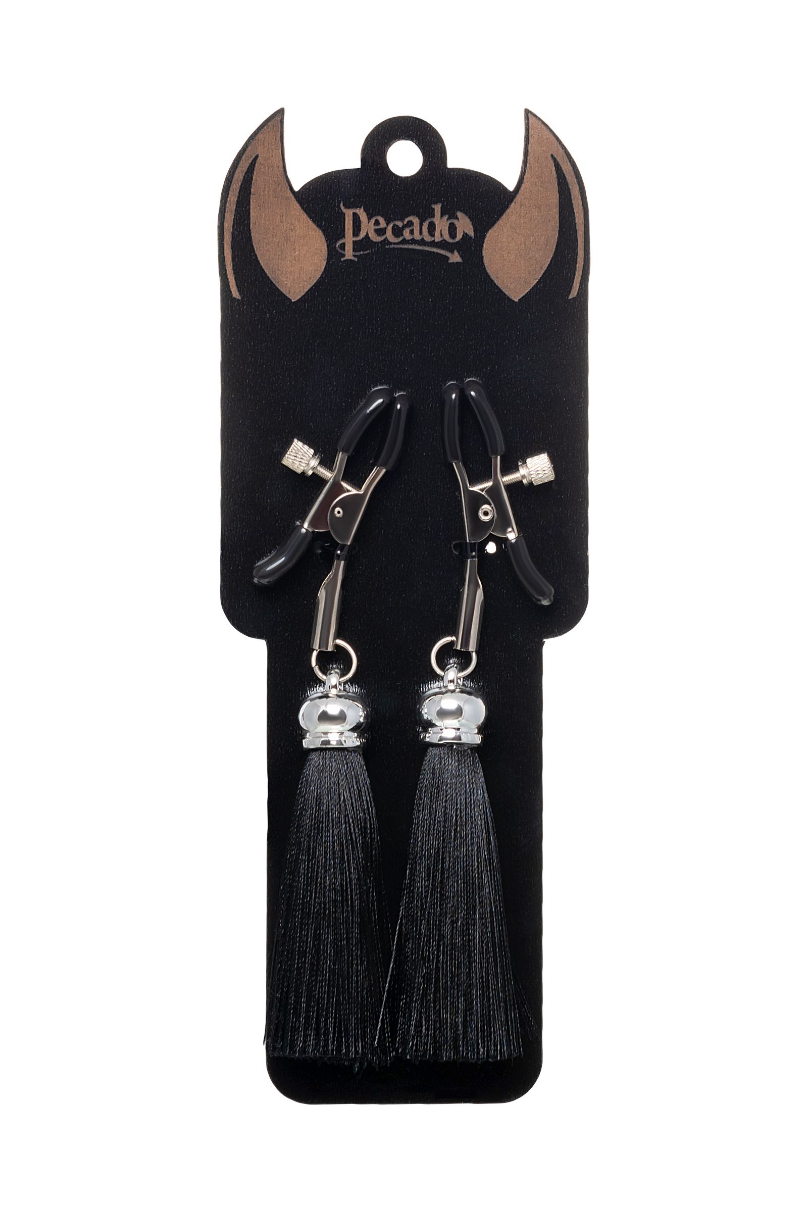 Хотите усилить ощущения от страстных игр с партнером? Увеличить степень возбуждения до невозможного можно с помощью зажимов-прищепок ручной работы от Рecado. Невероятно сексуальный аксессуар пробудит фантазию и повысит чувственность эротических зон. Мягкие резиновые накладки оберегают соски от повреждений. Металлический винт регулирует степень сжатия зажимов: от нежно-приятного до сильно-грубого. На концах черные резиновые наконечники, для безопасного воздействия на нежные участки тела. Компактный размер удобно вмещается как в женскую, так и в мужскую руку. Кисточки из натурального шелка не только визуально украшают эротический атрибут, но и еще утяжеляют его. Для самых смелых и искушенных любителей доминировать и подчиняться. Длина кисточки - 8,5 см.