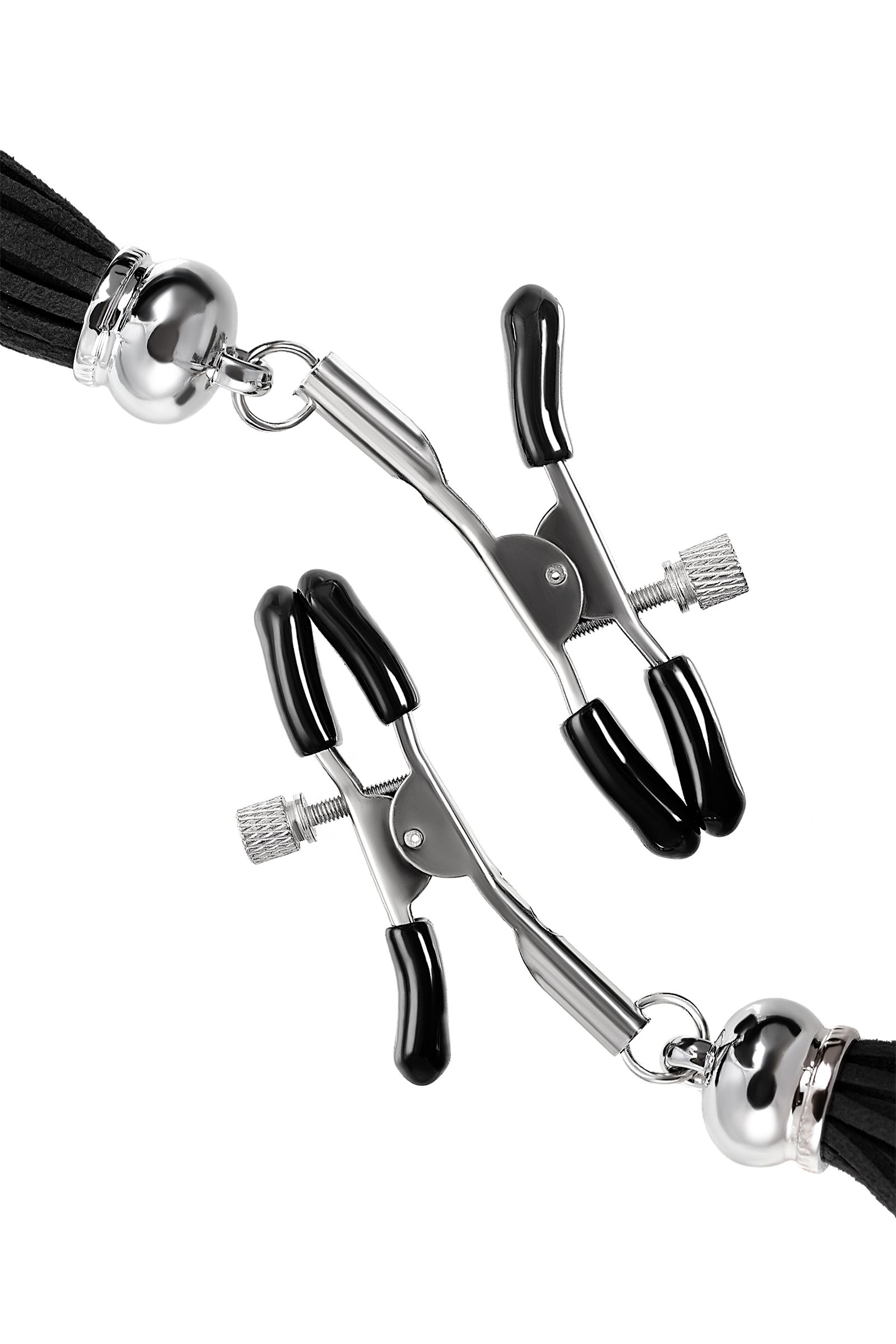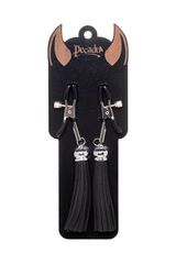 Хотите усилить ощущения от страстных игр с партнером? Увеличить степень возбуждения до невозможного можно с помощью зажимов-прищепок ручной работы от Рecado. Невероятно сексуальный аксессуар пробудит фантазию и повысит чувственность эротических зон. Мягкие резиновые накладки оберегают соски от повреждений. Металлический винт регулирует степень сжатия зажимов: от нежно-приятного до сильно-грубого. На концах черные резиновые наконечники, для безопасного воздействия на нежные участки тела. Компактный размер удобно вмещается как в женскую, так и в мужскую руку. Кисточки из натуральной замши не только визуально украшают эротический атрибут, но и еще утяжеляют его. Для самых смелых и искушенных любителей доминировать и подчиняться.? Ручная работа.? Надежная высококачественная фурнитура. Длина кисточки - 8,5 см.