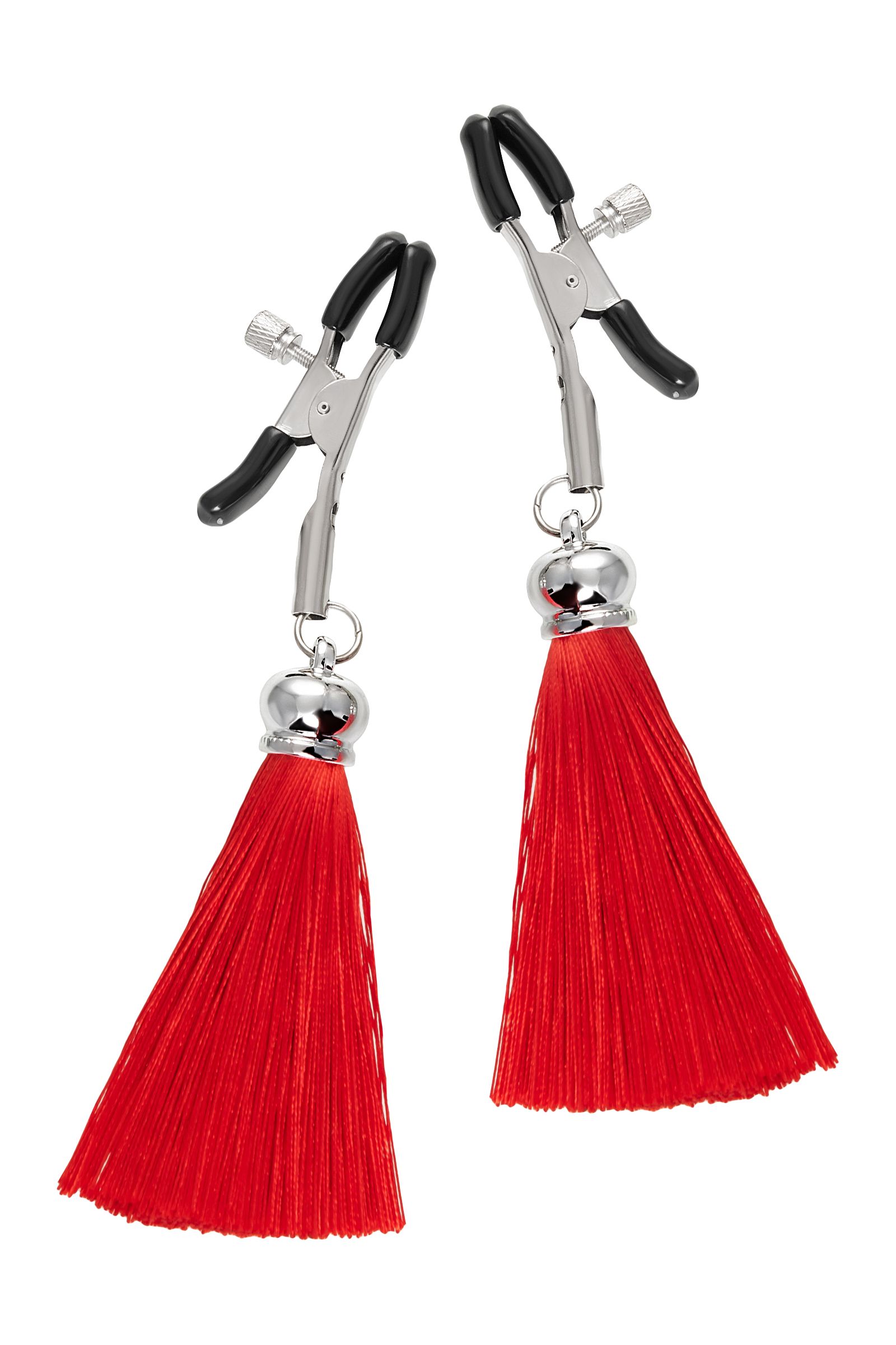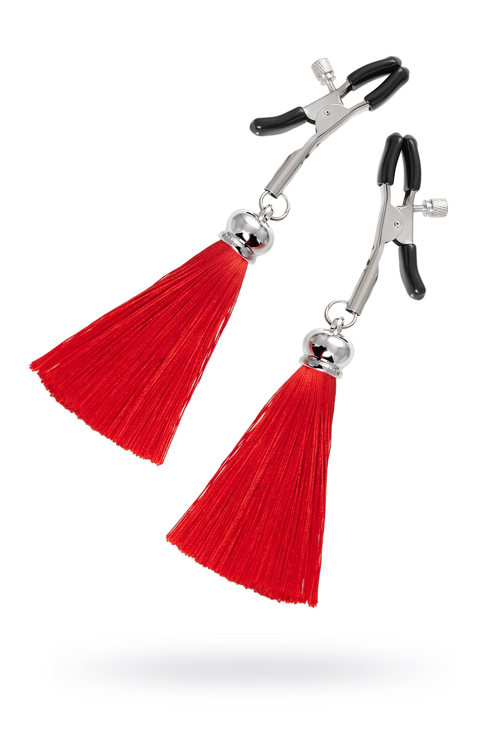 Хотите усилить ощущения от страстных игр с партнером? Увеличить степень возбуждения до невозможного можно с помощью зажимов-прищепок ручной работы от Рecado. Невероятно сексуальный аксессуар пробудит фантазию и повысит чувственность эротических зон. Мягкие резиновые накладки оберегают соски от повреждений. Металлический винт регулирует степень сжатия зажимов: от нежно-приятного до сильно-грубого. На концах черные резиновые наконечники, для безопасного воздействия на нежные участки тела. Компактный размер удобно вмещается как в женскую, так и в мужскую руку. Кисточки из натурального шелка не только визуально украшают эротический атрибут, но и еще утяжеляют его. Для самых смелых и искушенных любителей доминировать и подчиняться. Длина кисточки - 8,5 см.