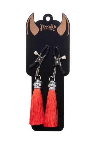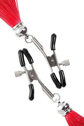 Зажимы на соски «Прищепки» с красными кисточками из шелка