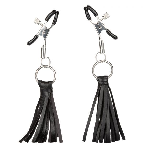 Клипсы с регулируемой силой сжатия, предназначенный для воздействия на соски путем их сдавливания. Украшения одеваются на возбужденные соски. Цеплять зажимы нужно не на кончик соска, а ближе к ореоле. Нельзя держать соски зажатыми дольше 15–20 минут. Длина зажимов - 5,75 см.