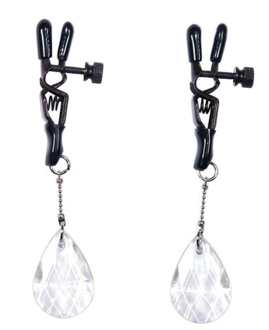 Зажимы на соски с подвесами в виде хрустальных капелек.